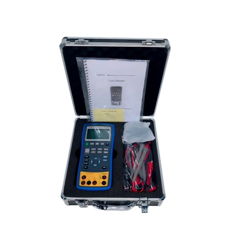 Overview: HSIN926 multi-function process calibrator is a high-precision handheld signal measurement/output instrument, which can simultaneously measure and output various industrial process signals such as voltage, current, resistance, frequency, thermocouple, thermal resistance, etc. Smart pressure modules can be used to calibrate pressure transmitters in the field. It can replace current signal source, voltage signal source, resistance box, electronic potentiometer, frequency meter and other measurement and calibration instruments. Mainly used in industrial field signal calibration and fault diagnosis; also suitable for signal measurement and calibration in chemical industry, military industry and various research institutes and laboratories.