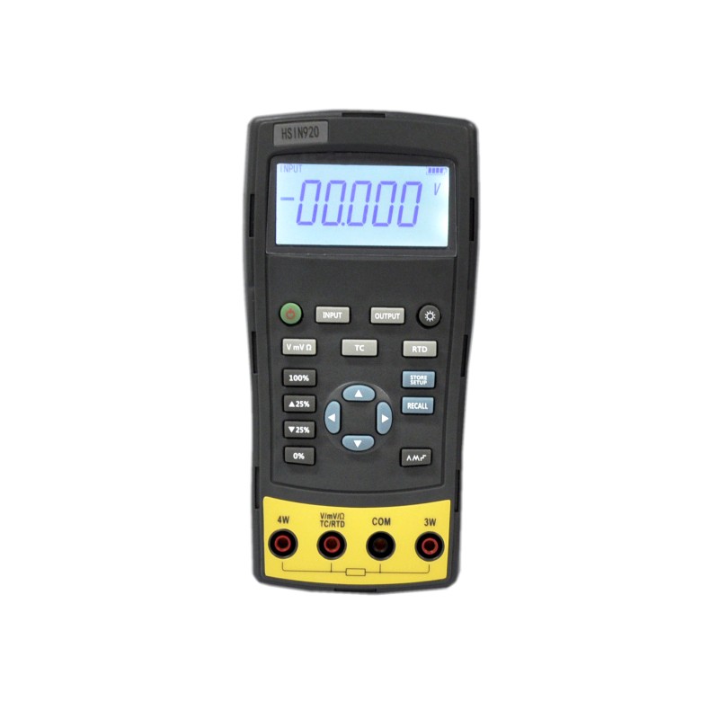 Overview: HSIN920 temperature process calibrator is a high-precision, high-resolution, high-reliability handheld calibrator that integrates measurement and simulation of thermal resistance, thermocouple, output and measurement of voltage, millivolt, resistance and other electrical parameters. . High-brightness large-screen display with backlight, simple operation, sturdy structure, small and light, compact and economical, can be used in instrument workshops, measurement rooms, calibration laboratories, and is an ideal calibration instrument for process control instruments.